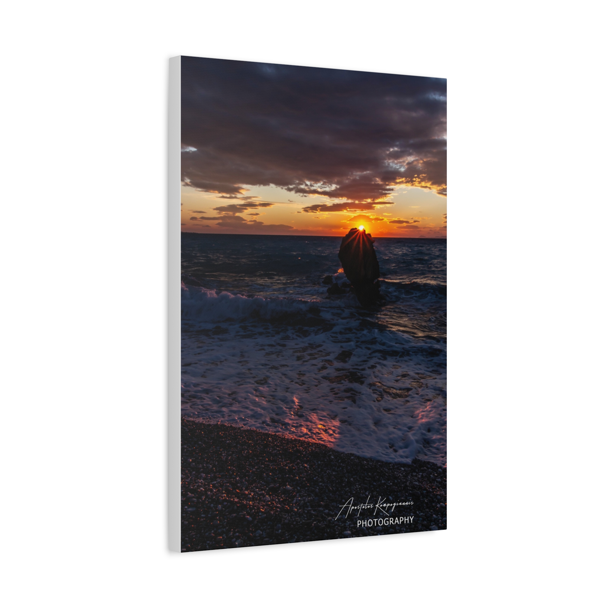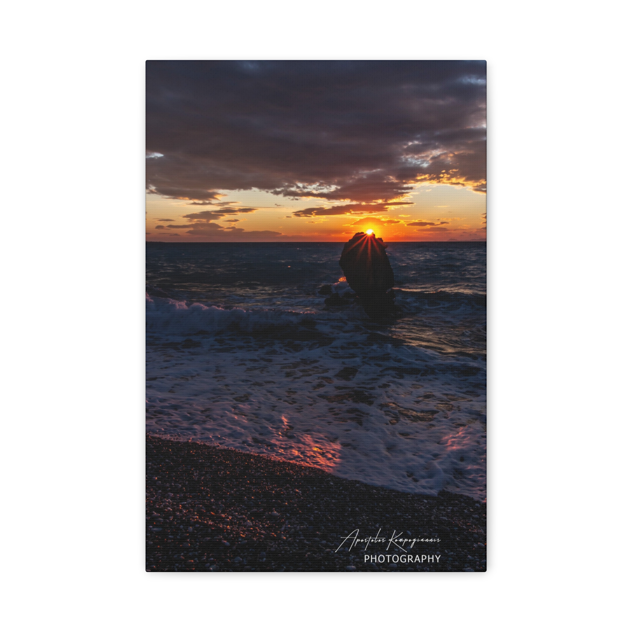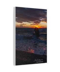 Preserving the magic of a memorable sunset. The sea, the rock, the sun: three witnesses to time’s ceaseless journey. Perfect for canvas prints.